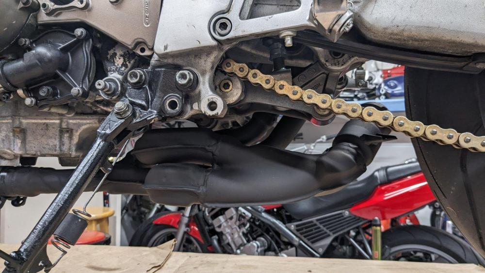 Member Contributer Captain 80s Posted August 17, 2023 Author Member Contributer Posted August 17, 2023 Restored triples (97 lower clamp) with new tapered bearings and 97 clip-ons. Steel braided brake lines, FR & RR, and Clutch. 97 forks with RT .90 springs. Stock front wheel has been hand polished and waxed with restored lower mile rotors. Placeholders until I paint a 97 wheel with floating rotors. Restored controls, custom D&D slip-on and hand polished / waxed stock rear wheel. I left a good portion of the old RT passenger peg bracket for the rear cowl mount and I'm going to mount the FOX TC res off of it after it's rebuild. Waiting for some shift rubbers to come in. Brake line "stay" is temp so I can roll it around and take a test ride before I get decades of chain grime off of the chain guard. Lots of stuff need more love, but not this round. Bleed brakes and clutch and start polishing bodywork. 2 1