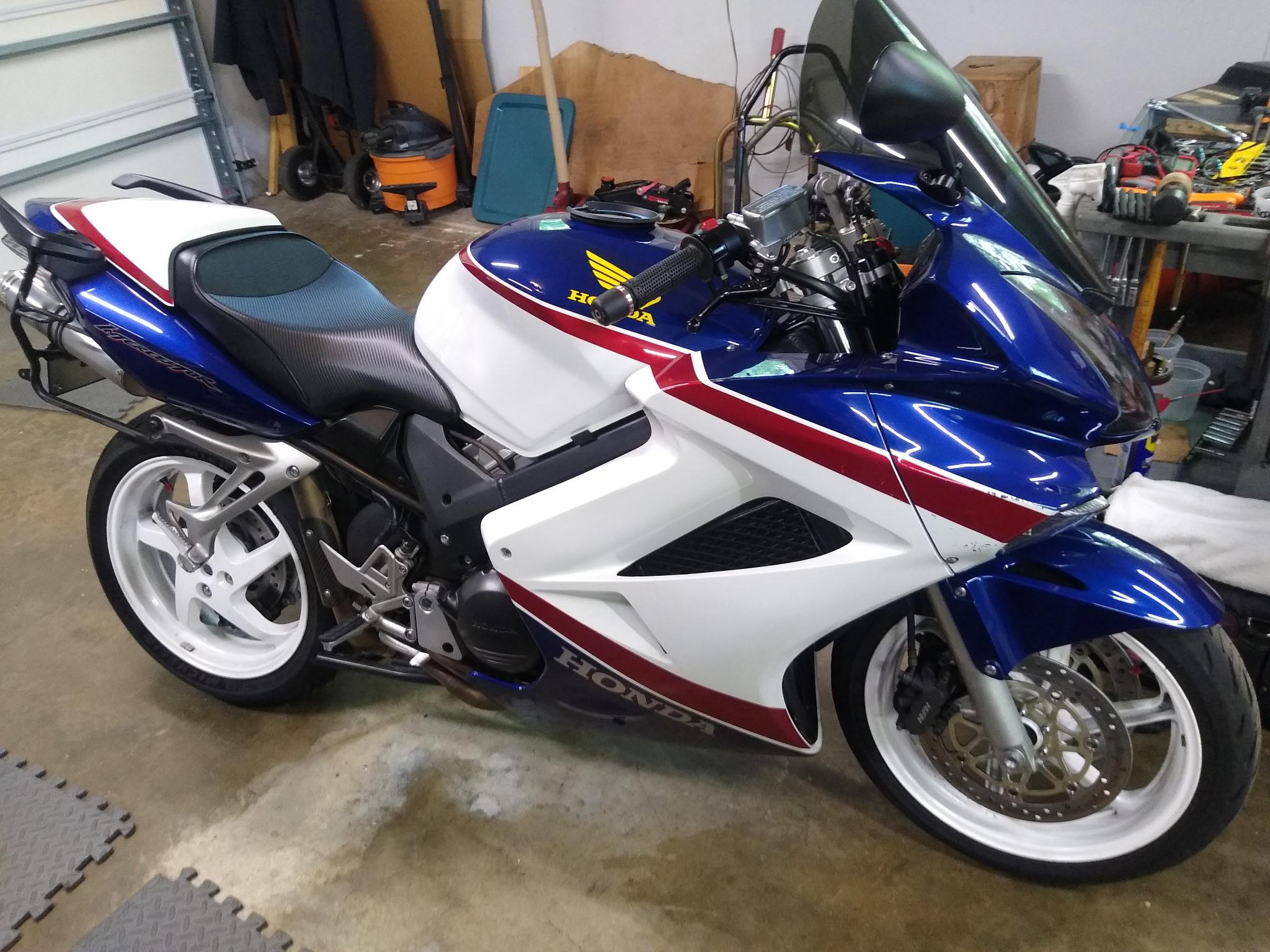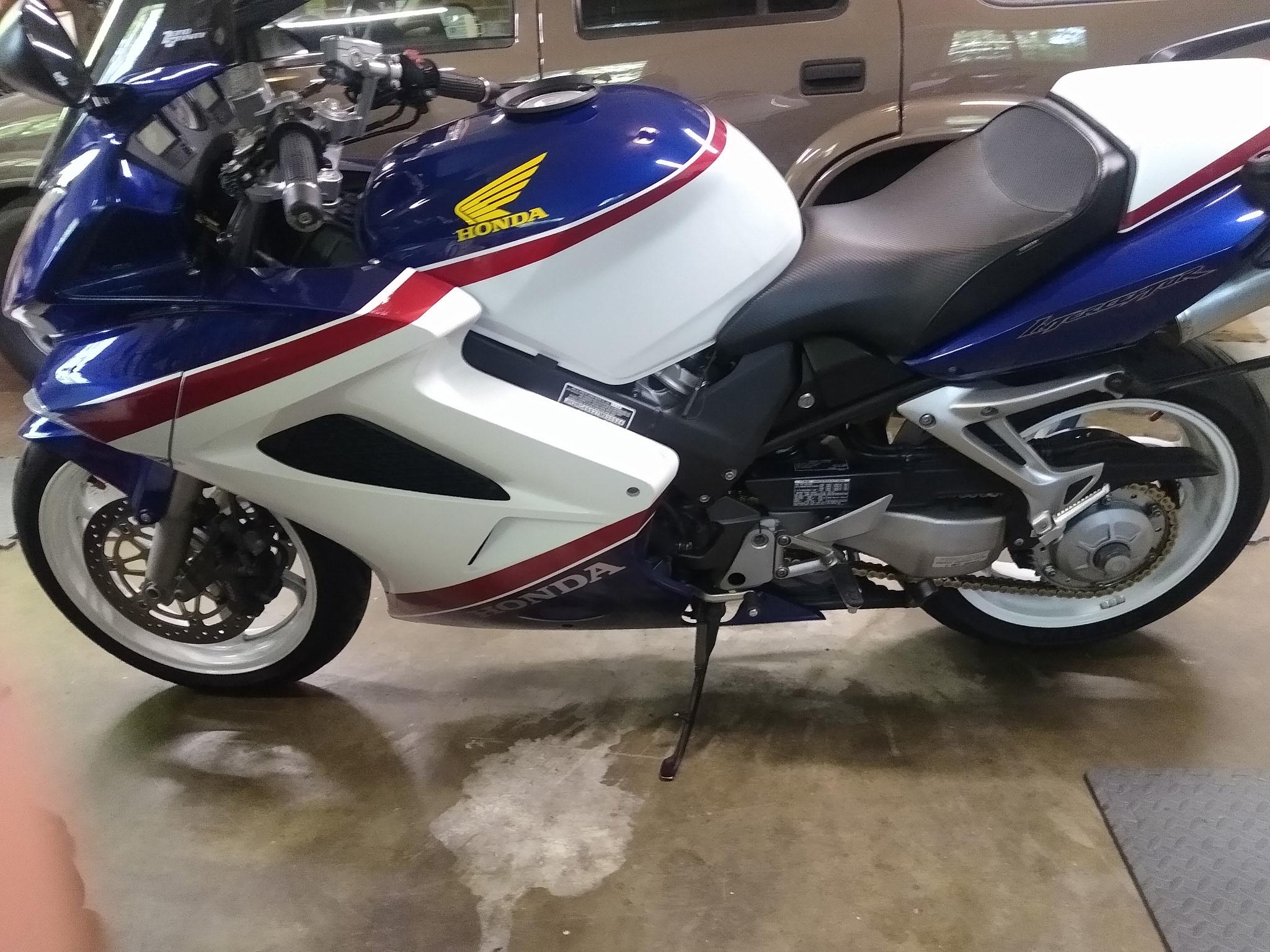 bmatic007 Posted April 23 Posted April 23 Hi everyone! Returning member here. I had a 2007 VFR800 about 15 years ago, but I ended up selling the bike because I needed the money and have regretted selling that bike since. I found another 2007 VFR800 RWB with white wheels for sale and I am seriously thinking about pulling the trigger, but I haven't really kept up with the VFRs for a while so I am looking for any advice on what to look for and what questions to ask. I apologize if this topic has been discussed in the past. Like I said, the bike is a 2007 VFR800 RWB color and while wheels, I was told the while wheels mean that it doesn't have ABS. The bike also comes with matching blue hard cases. The bike has 11k miles which is low for an 18 year old bike so not sure if I should look at it as a negative. The owner has changed the oil and replace front/rear sprocket and chain and put new Michelin PR6 tires on it. The bike appears to be in good cosmetic shape. The bike has a PC5 and was Dyno tuned for low RPM lugging (? not sure what this is about). What do you suggest I ask or specifically look for on this bike? Are there any weak points on this bike? Thank you all in advance for your response. Quote
