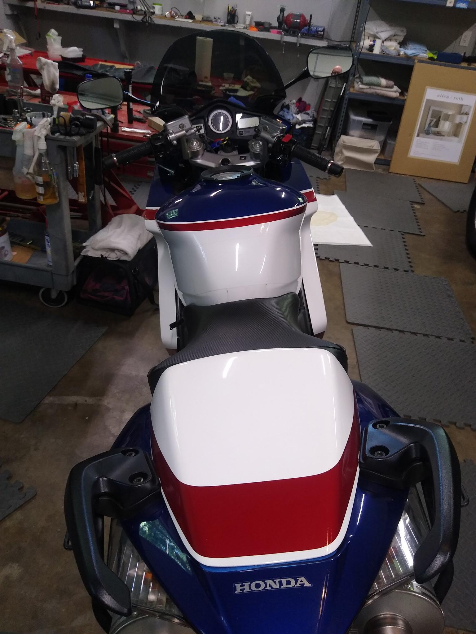 bmatic007 Posted April 26 Author Posted April 26 I ended up getting the bike! Yay for new bike day!! There are some cosmetic items that I'll need to address, however the bike runs really nice which is what I was mostly concerned about. It looks like the front cowl needs replacing as there is a small crack in it. The owner applied some JB weld to the underside of it. The crack is minor and is holding up well. The front cowl however has scratches on both sides that can be probably covered up with decals that he already had but I might look into replacing due to the crack. The other item is the right side radiator. It looks like it might have taken some impact but I won't know fully until I get the right cowl off and inspect. The last thing I noticed was that on the left side cowl, the red stripe has some bubbling in it... not sure what's that all about but probably need to replace that decal as well. I'm pretty mechanically inclined (I've done valve adjustments/etc on other motorcycles) so I'm hoping that these things won't be too bad to replace. I hope the front cowl is not a huge job as it is in some cases. Any advice is appreciated and also the best place to buy parts. Thank you all for your initial feedback and I look forward to being part of this community. 3 Quote