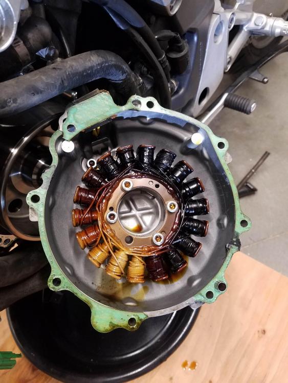 Member Contributer chris2992 Posted February 3, 2007 Author Member Contributer Posted February 3, 2007 Pulled my stator tonight. UMMMMMM, I think it is fried, looks like it was half way in a deep fryer. Fried Stator This is what a bad stator looks like! I'll be sending it off to Rick's on Monday. Report coming. Quote