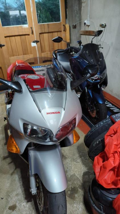 Hello from Northern Ireland! 👋 I'm back to riding after a number of years away (15+). Decided to cautiously dip my toe in the water about 6 months ago and bought a brand new Yamaha NMax 125 scooter. Well, put it like this, within 1 mile I knew I wasn't going to enjoy the slush box belt twist and go experience. I needed back on a geared bike! Before I'd stopped riding, I'd worked up from a CB250 superdream, through to a 600 Hornet and 929RR Fireblade. I finished up with a Z750 and 700 Ducati Monster before hanging up my gloves,. so I really don't know what I was thinking buying the scooter! I guess it was just nerves about finding my skills again safely, now that I'm a bit older and wiser. One of the best test rides I'd had years ago was on a 6th gen VFR800 VTEC. I owned the 929RR at the time and couldn't believe just how fun the 800 was. That engine note.... and the snap on/off VTEC was hilarious. So, my focus was on getting a clean VFR 6th gen. 3 failed attempts to buy later - 2 from a local dealer who promised to call me as soon as he had one coming in (but didn't) and a private seller of a 12k mile VTEC which I offered the asking price on. The problem though, I'm in Ireland and he was in England. Despite offering to send over proof of ID and a bank transfer deposit, he sold it out from under me. It was then that I spotted a lovely 5th gen 50th anniversary for sale locally and to my surprise... I knew the owner! I've known him back 20 years and he was ALWAYS a fussy owner. 24hrs later, the deal was done. Just 19k miles on it and in lovely condition. The proper 50th anniversary panels without a mark on them and the matching seat cowl I bought it on the spot! I'll freely admit.... the first run out didn't happen for a couple of weeks until the conditions were right. Bear in mind this is my 1st geared bike ride in probably 18 years! First issue was getting used to pulling the bike from the garage safely! No grab handles didn't help, but I remembered my bike lessons, leaning the bike into me a bit, one hand covering the brake just in case. Got geared up... got the bike warmed up.... then set off. Perhaps some might say I was mad after this time to go straight to an 800, but I knew full well that if I started on a smaller cc bike I'd hate it within hours. I never liked my 600 Hornet and always preferred something with more low down torque and longer gearing. I needn't have worried! I'd say it took about 10 minutes before I was right at home again! The VFR is a delight to ride and just right for where I'm at. I can short shift and just enjoy that rumble and whine of the cams... but give it the beans here and there. Just perfect! Previous owner fitted a voltmeter so I quickly realised that the charge system was NOT up to scratch! Discovered a TourMax R/R in there which seemed to be the well known weakness here. Stator tested well with zero ohms resistance on all 3 coils, so I'm currently mid way though installing a MOSFET R/R supplied by Kevs Shed which I'm sure many of you have watched on YouTube. Kev does a full R/R kit right down to the aluminium mount plate, silicone wiring loom and self resetting breaker. I've a new set of Bridgestones to go on as soon as that's done and a set of AS3 Performance stainless coolant hose clamps. I wasn't happy with how some of the mild steel fittings look under the fairings on inspection. After that, it's going to my local mechanic for a top to bottom health check. I plan to powder coat the forks and perhaps the side and centre stands. I've been ordering a lot of OE fittings to refresh anything that's either missing or showing signs of age. Whilst I aim to keep the bike close to original, those condom mirrors DID have to go! I've also talked to Scorpion exhausts and they are making up an OE look can with no branding so I can let a bit of that sweet V4 sound out without changing the look too much. As for that wee NMax, well, only 130 miles on it and I'd lose a fair chunk in depreciation to get rid so soon, so I've come to actually quite like it for what it is. Great for a quick run to the shops when the sun's out and room for a large bag of groceries under that seat! It's staying... for now. Thanks for reading the ramble... and I'll have plenty to ask over time no doubt 👍9 points