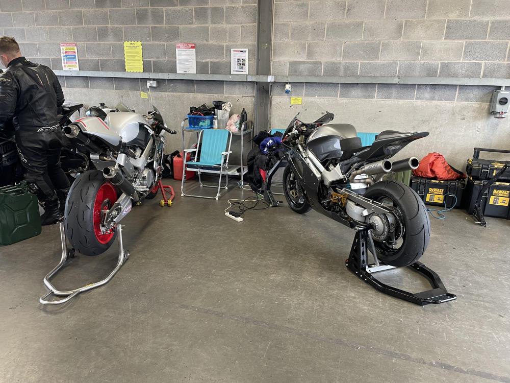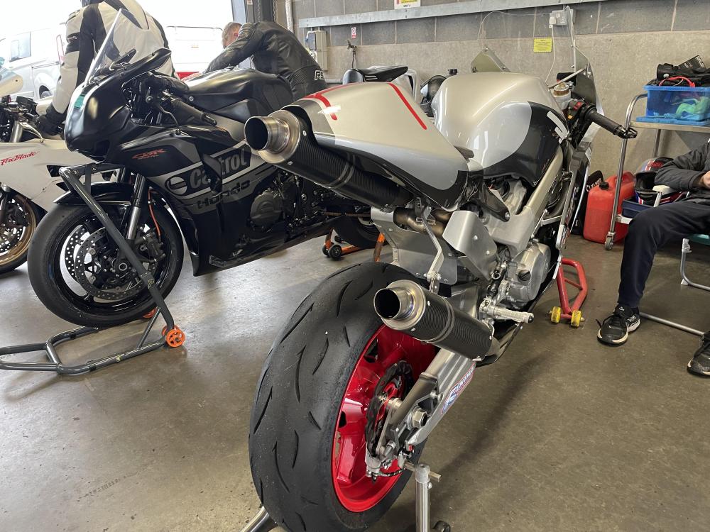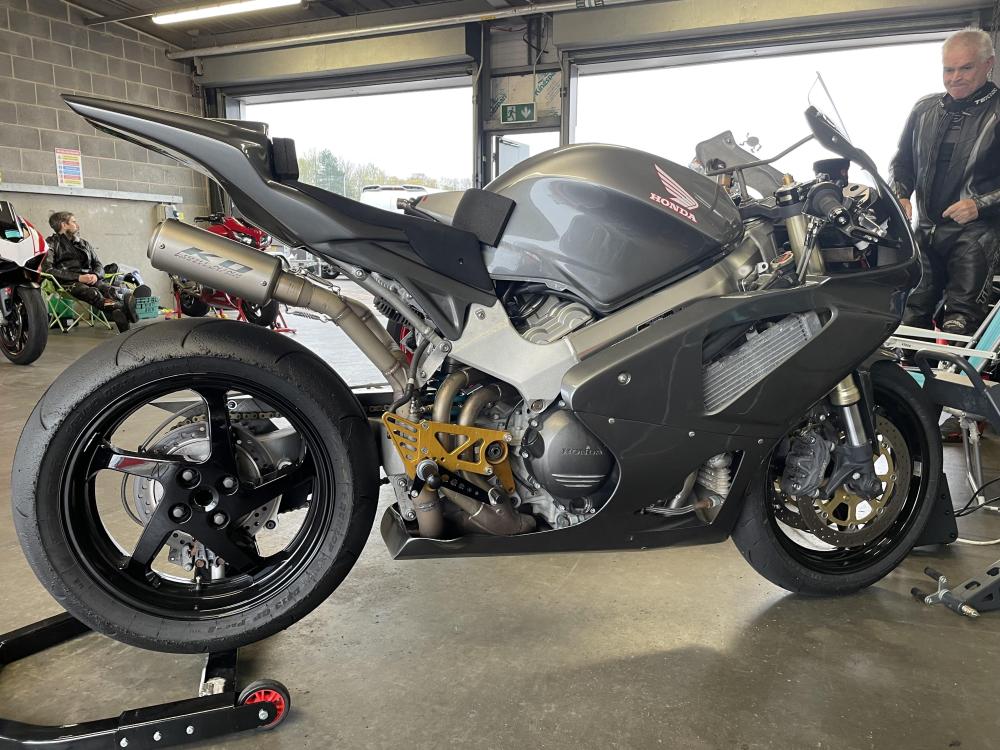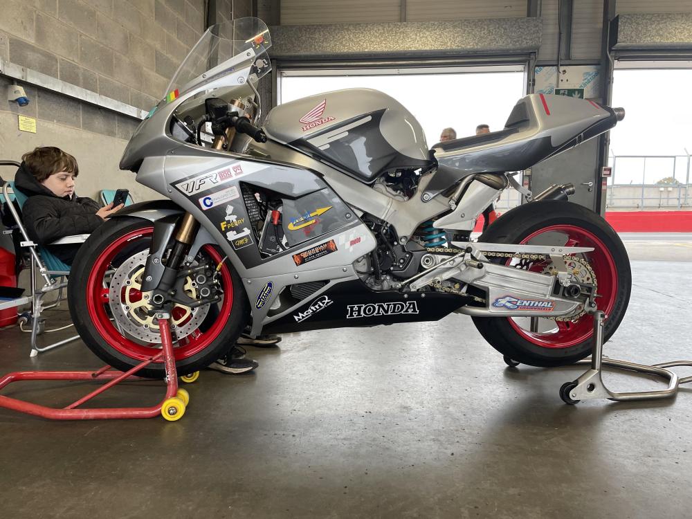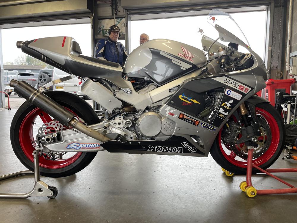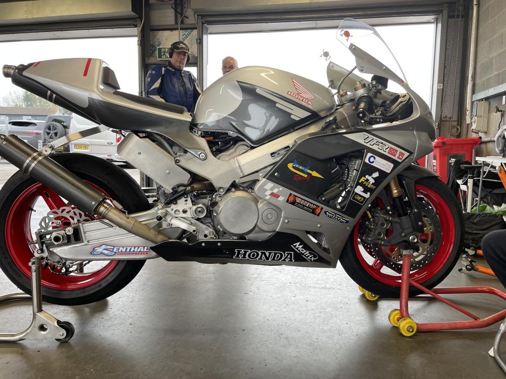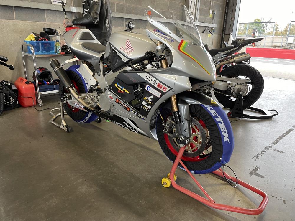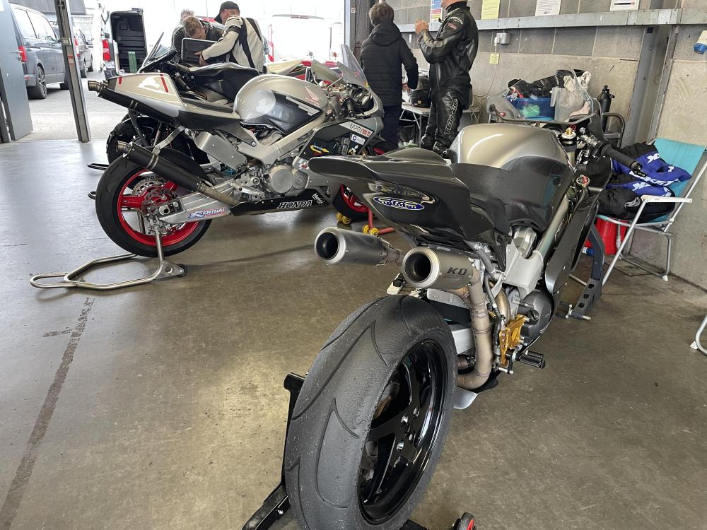 It was a mad rush to get the bike ready for the Donington Park track day with Mohawk but we got there in the end!!! Didn't have time to fit side fairings or centre stand but did get the quickshifter installed. I was lucky enough to get to see Mohawk’s famous blue 5th gen in all its glory from every angle…especially the rear as he blew past me twice on track!!! We shared a garage on the pits. And found the VFR can lean and burn. Check how tortured Mohawk’s tear looks! Mine looking respectable. Not bad for touring rubber! Mohawk has a gadget that replays his fastest speed on the clocks…that in MPH. Followed, of course, by some heavy braking before that tricky double-apex right hander after the home straight. It was a noisy track day at Donington, which tends to bring out all the likely lads and MotoGP hopefuls. There were a lot of exotica and prototype bikes there. Thousands of £’s worth of the latest tackle. So we were surprised (and VERY excited to see these familiar looking things. Can you make them out? Not going to lie, I was giddy as a school girl when I met these guys. The level of engineering and all the little modifications required blew my mind!!! They were very interested in some of Mohawk’s mods, like stick coils, single nut rear wheel and ram air, among other things. Hoping they join the forum.10 points