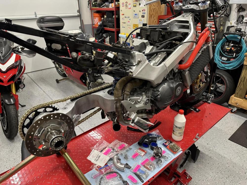 Hi folks, as written here, I betrayed my country 😁 keeping the V but halving the cylinders. The bike was in bad conditions, witnessing very poor maintenance and one fall; the owner told about just a small tip-over but the signs on fairings, and engine covers let me thing it was something a bit more severe. Nothing serious, but hey... a dent on the tank, footpeg bracket bent down, shift lever broken... it's not an innocent tip-over 😅 The final drive was crap, grips at the handlebars was worn and ominously sticky (I don't wanna know anything more 😅) Also, the owner cut out the tail to install a leaner plate holder and led indicators, but the result has been pretty hacky. And the electrical job below the seat is even worst 💀: Anyway, this bike won me (inexplicably 😅 ), and I decided to start a new project bike on it. The leitmotif of the project will reflect the essence of this bike (that definitely won me): simplicity. I'm going to simplify it at the utmost, removing any redundance and not essential stuff. At first, I started disassembling the wreck: Its "ginormic" carburetors are really impressive One of the first job to do, needless to say, it's the PAIR removal. On VTR, PAIR actuator is not electric but vacuum actuated by a hose coming from front carburetor. I removed all the stuff and plugged the connection: But this bike was in need of something more serious than cosmetic trifles. Timing chain tensioners were about to fail, especially on front cylinder (that's pretty common on VTR), so i removed anything into the "V" to easily access the tensioners and replace them; as obvious, I set the timing, first: Since I needed to remove the cooling system to access the front tensioner, I took the occasion to a small upgrade, so I replaced the hoses with silicone units; also, the connections to the carburetors have been removed (VTR has a heating line for carburetors, but I defintely do NOT need it)... ...and the connections of the thermostat housing gave been plugged Once fulfilled this task, I passed to the radiators before reassembpling the cooling system, since I decided to replace EVERY not stressed screw with ergal component. the cooling system has been reinstalled: In this phase I took the occasion to reorganize the breathing/bleeding lines in a tidy way, since the OEM hoses are loooong and twisted into the gut of the bike: Prior to close the work on the engine, I made the same coil conversion made on the VFR Here's a picture with the old system compared with the new. To finalize, a set of iridium sparks and the engine is done. After this, it was the turn of the final drive. Unfortunately I've not been able to find the Supersprox sprocket I was looking for, so I bitterly fell back on a standard JT unit (Z+2) I compensated the lack of the supersporx sprocket with a ergal nut for the rear axle, and aluminium wheel spacers And just to show how autistic I am, I even dismantled the chain adjusters to restore and clean them, bringing them to mint conditions 😅 I removed the original rear brake reservoir (just below the seat, on the right side) by installing a smaller one directly connected to the pump; in this way I removed the reservoir itself and the long connection hose, but above all I could move the R/R in its place, where it can get more air I installed the footpeg adapter I used on the VFR, to raise them up without touching the brackets (but I have some plan about it 😎) The bike came with a Leovince exhaust cans set. I have the OEM also, but I do not have the carburetors jets, so I decided to keep the Leovince's on. I raised up the mufflers, and the original brackets have been removed So far, I made some ROUGH and UGLY supports. They are very bad, but they're cheap and work fine; they will be replaced with dedicated components by my design. I'm just waiting for some salaries to come in order to stabilize the budget... 😅 At the frontend, the forks have been serviced, then I put titanium bolts for the front subframe (that's in steel; I'm going to build a new one in aluminium) and a forkbrace by Dr. Ergal design. The plate in the picture is just a prototype to test the size; the final one is still on the way New grips on the handlebars, ergal screws everywhere and that's it. The bike is simple and essential, so no need for further operations; I just cut out the locking pins to spread out the bars By following my purpose, I searched for any non stressed screw to be replaced with ergal units. And I mean EVERY screw... I don't have all the pictures, but those are the screws I removed and replaced with ergal All the remaining bolts are structural, so I could replace them with titanium, just in case. Maybe in future... In conclusion (so far 😁) I reinstalled the mirrors used on the VFR, with led indicators: And here it is! Being a projectbike, the modification will NEVER end 😁 The next steps are: Lightened pinion cover Li-Ion Battery Rear and front subframe in aluminium Muffler brackets Lighter brake rotors Adjustable ignition phonic wheel Lighter wheels (but I'm afraid that this item would cost me a divorce 🙄😆) Keep tuned! For those who are wondering if I forgot the lower cowl, well no: I simply removed it because I like the most this way. You remember? Simplicity... 😉9 points