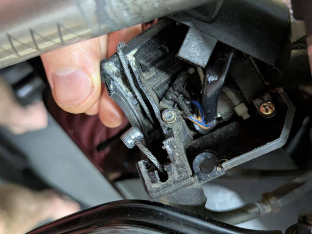 In preparation for my spiffy Woodcraft clip-on risers, I decided to take apart my throttle and see if my new Vista Cruise works well... ooh ahh... cant wait.... Well... despite my belief that my VFR has the snappiest throttle in the garage... this is what I found: 😧 CODE RED. NOT BUENO. I guess that's what 62k hard miles will do to a throttle... Thank goodness for the used market though. Copped a used set (only 13k on the donor bike) for $25 from Sun Coast Cycle Parts, as opposed to shelling for new-new stuff. I am also replacing the throttle tube... because... I mean look at it: Could I jam the new cable in there? Sure... but I ordered a new nylon tube from Motion Pro that should suit me fine, and I have a spare set of grips on the shelf collecting dust bunnies... All this because I just wanted to play with the Viffer in the garage today 😭