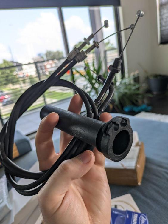 New(ish) cable and throttle tube arrived! Since I busted my foot at a mini moto race day yesterday, I'll have plenty of time in the garage to get these clip-ons installed! (Don't mind me hijacking my own thread... But I need this off my chest) Turns out you get what you pay for. My 5 year old $250 AS SMX-V2's did not protect my foot from a *vertical* crush on a high-side. I'll be wearing my spicy and pricey SIDI Rex's from now on. Even just squeezing them in the garage, there's a massive difference in stiffness exactly where I'm hurt. It may have saved my foot.... Heading to the doc in the box for X-rays soon. (Update: X-Rays came back clean! 😄 Still going to rock the fancier boots from now on. Now that I'm riding hard and crashing often, I need something that protects me better in the way I crash)