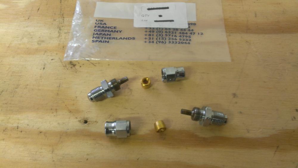 Its been over a month since I bought the 8th gen VFR800 and I haven't turned a wheel yet. My mission is to modify the bike so I can ride it with one hand. This is my 10-11 bike so i know what i'm doing. Because I'm trying to do it a little differently, its taking much longer than I expected. The 8th gen comes with ABS on the USA deluxe model so the brake lines are both rubber and hard lines. This is great in modifying the brakes as I can tie into the junction blocks that connect the rubber & hard lines. The challenge is where to find the adapters that will makes this happen. Since my usual method was to remove all the lines and make my own steel braided lines, this area of expertise is new to me. This new approach saves me from ripping the new bike apart and the $$ to make the lines. I am using Goodridge prefitted lines and they did have an adapter that fit the rear brake junction block (see pic). My dilemma is finding an adapter that will join the front OEM hard line and the Goodridge line. I've already wasted $65 and two weeks waiting for the wrong parts from the UK. Now I'm looking at auto brake parts catalogs like www.jegs.com for help. Three units are on there way, but that's another 7 days down the tubes. A side plan is to machine an existing OEM brake line junction block. That part is on its way too.