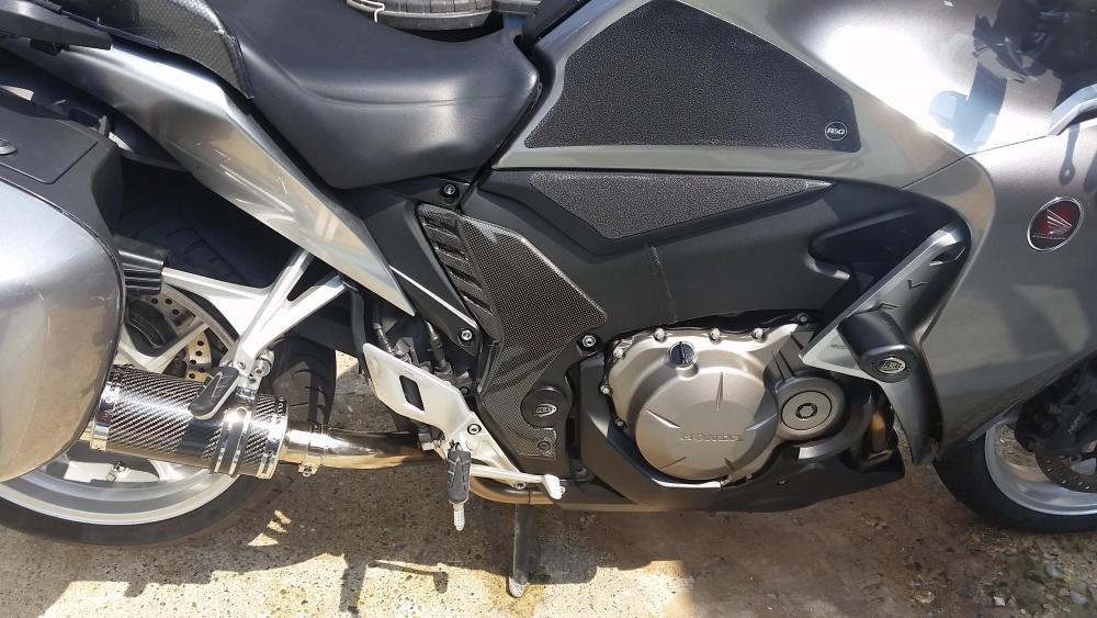 Well, here we go. Firstly, thanks to those who read my prevous posts called Prodigal Son Returns and He''s coming home. It's been a few months in the making since I first got her home but here is my grey lady. From the top... Double bubble screen & Headlight protector from Powerbronze. Carbon mirror covers Carbon side fairing's Carbon front mud guard Carbon effect seat cowl Carbon stubby noise cannon from Delkevic A pair of Michelin PR4 GT dancing shoes GE477 H7 headlight bulbs (+130) And lastly Osram Diadem indicator bulbs front & rear to give her beautiful blue eyes like her daddy. Hope you like her.