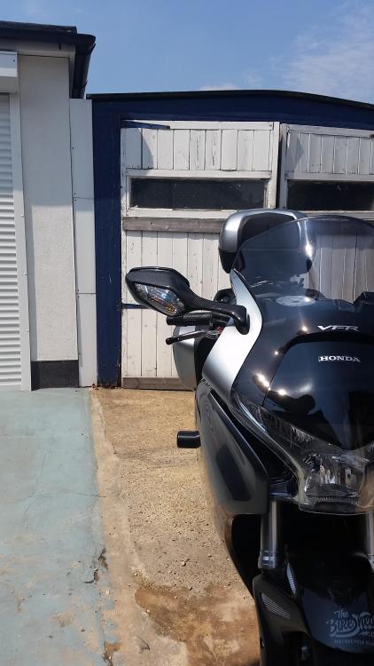 Hi all, I got a white VFR 1200F with panniers. I was looking around to get some smaller boxes and i found the attached picture of a Met Police bike with flat pannier lids. I have looked at various pictures from the front and rear and they appear to be genuine boxes and give the bike a slimmer profile. At the moment, the original panniers come out wider than the mirrors. Does anyone know if these lids can be obtained in UK, if so, where? Also, these bikes have reflective detailing on the pannier lids and front mud guard. Does anyone know where i can get those. I have searched the interweb for both of these and cant find them anywhere. Any help greatly appreciated TIA Out of ideas, London