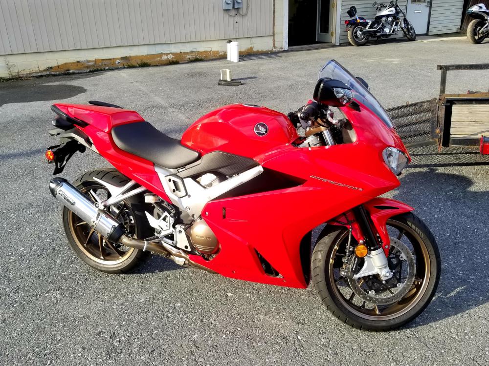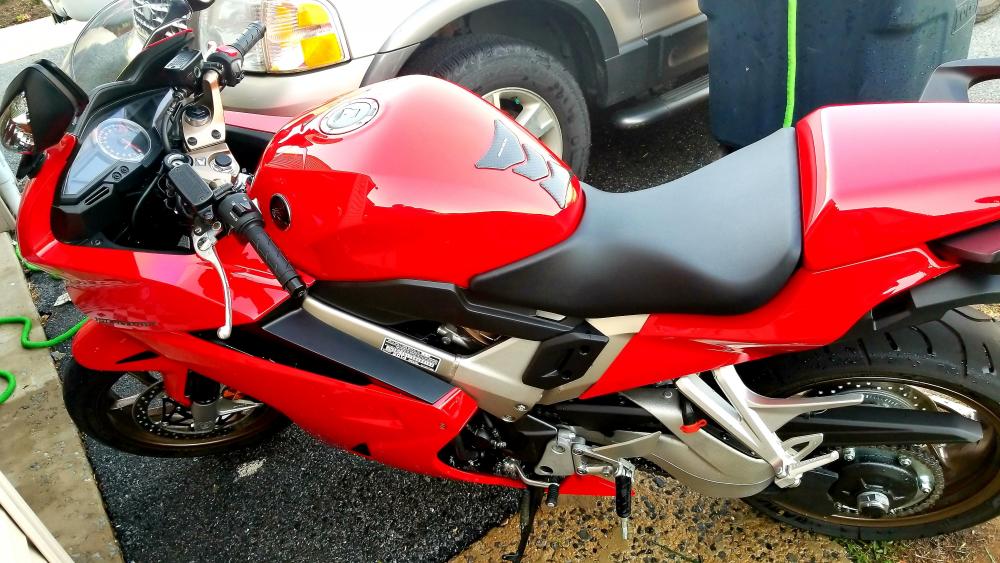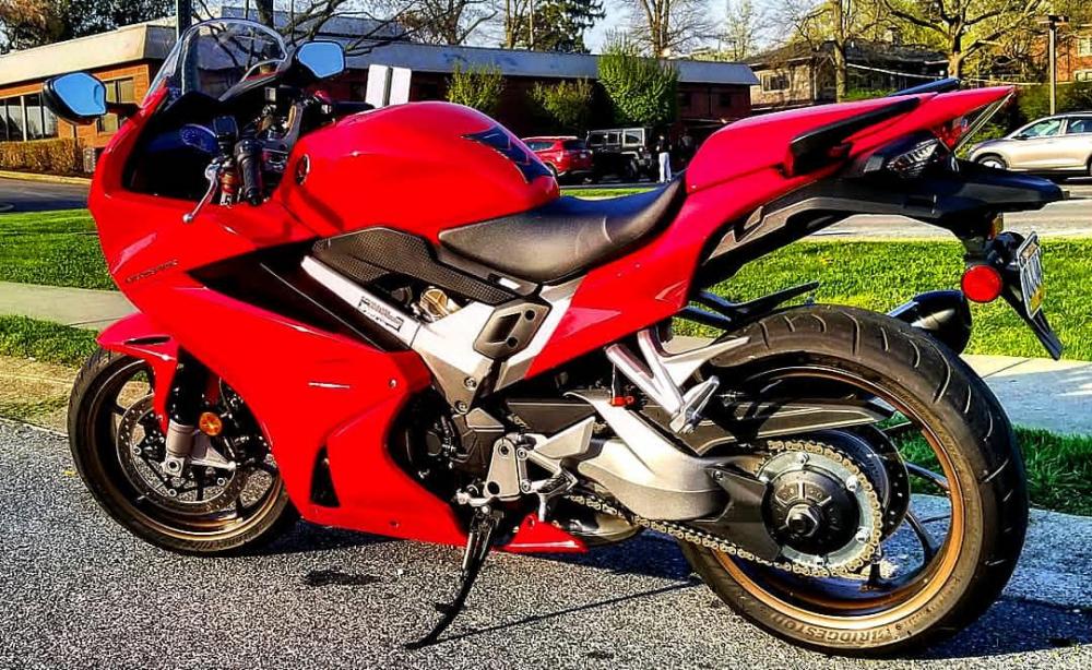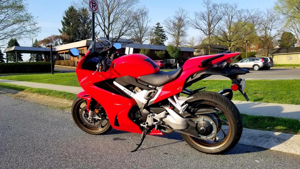 Hello folks, I'm new to the Honda and VFR world! At the start of March of this year I purchased my first Honda, she's a 2014 VFR800F and when I got her she only had 1700 miles. Now she has 1800(to much rain here in the northern states to ride.) So far I'm loving every minute of riding her and just sitting there starring at her after a good wash&wax job. Unfortunately a few weeks ago I had my first lay over with gravel while trying to make a low speed turn on a crappy farm back road. Needless to say the bike is fine except for road rash on the fairings and a bruised calf(and pride) But none the less she kept kicking and the small lay over hasn't effected the ride or performance. I look forward to making new friends on here!