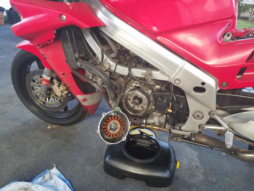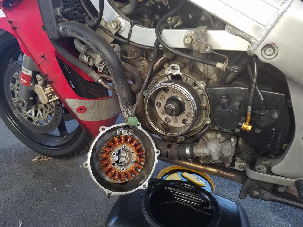 I have a weird charging issue. 95 VFR, bike dies suddenly at lights and doesn't start up randomly. Found the plug from the stator to the reg/rect was fried. (I have a Ricks reg/rect.) so I replaced the whole harness with the VFRNESS from wiremybike. Bike ran for a few days but then wouldn't start, had to push start to get it home. This has happened before the vfrness as well. so I thought maybe it's the battery and I replaced it last week. The very next morning out it dies on me on the Brooklyn bridge half hour in to the ride. Pulled the stator, looks okay to me, but wanted to get ya'll expert opinion. I don't know what's wrong, or what to replace. replaced the harness, replaced battery, replaced reg/rect, stator looks okay. when I put the voltage meter to the battery it goes up to about 13.8v at 4-5k rpm. so It does get juice when it's running. I wonder if at some point it stops getting juice?!?! Got a battery voltmeter I haven't put on yet just to see if it drops at some point, BUT PLEASE ANY HELP IS WELCOME. I have no clue what to check..
