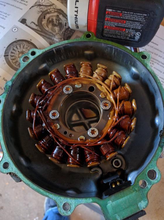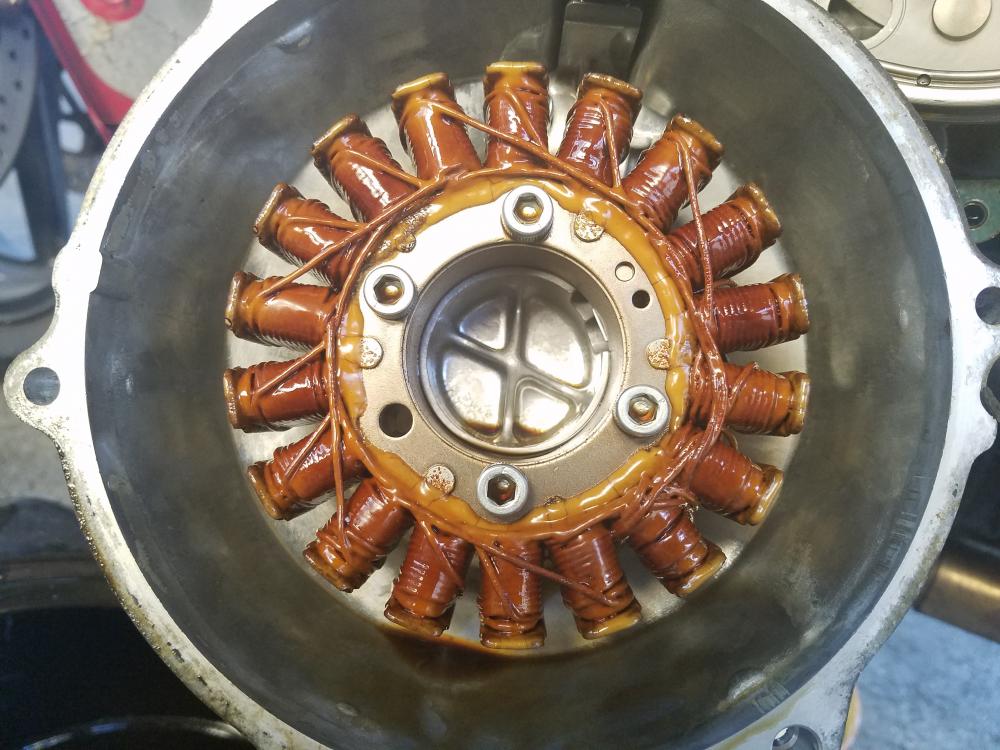 Hey guys, long time lurker but finally had a reason to signup/post. I've had my 98 since she was 5 so I'm quite familiar with all the usual VRR woes. I've gone through 3 of them, now about to put in a 4th. My stator checks out on resistance, no ground, and voltage at idle and 5k but I was curious to visually check out the stator as I haven't done that in all the 73k miles on it. So I opened it up and have attached a pic. My question is, should I replace it? It doesn't look FRIED per se, but it sure doesn't look spic and span. My tentative plan is to replace the stator and VRR (and solder the connections) with Rick's versions and throw in a VFRness too if that seems beneficial. Anything to not have to do this again.