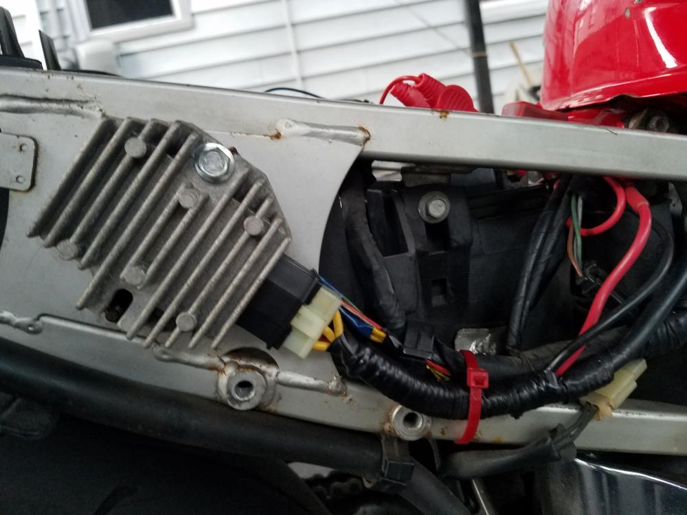 Ok so if not really sure what's up with my luck, but it's pretty bad. I'll give you the run down in the order it all happened. Had electrical problems when I first got the bike, flickering lights, and generally bad behavior. So I replaced the RR with a "OE" I got off eBay and put in the vfrness, problem solved. I took the bike to the track, RR caught fire and took the vfrness plug with it. I replaced the plug and RR with Rick's electrical RR. Problem solved. Couple of weeks later the battery just keeps dying on me over and over and it just can't seem to hold a charge, figure the RR nightmare may have cooked the battery. So I replace it, Problem not solved. So I look around and find the pins in the RR plug are loose so I mess with them but the plug is trash so I replace it. Still doesn't fix it. The bike will charge cold, but once it gets hot it stops charging. Heat soaked stator, replaced that bitch. Seemed to be charging fine so I went for a ride, 10 miles in I have a dead battery. Seconds before rolling my bike off a cliff I decided to throw on the OE RR i originally took off the bike for shits and giggles. Jump started it, rode it home, battery at 12.9 volts, problem solved. 50 miles later, I have a dead battery once again. Are both the RRs I have toast? Am I being haunted by some electrical phantom, should I try another new RR? At this point I'm ready to just give it to some kid walking down the street... Thanks for listening, if you have any advice I'll take it. Miles