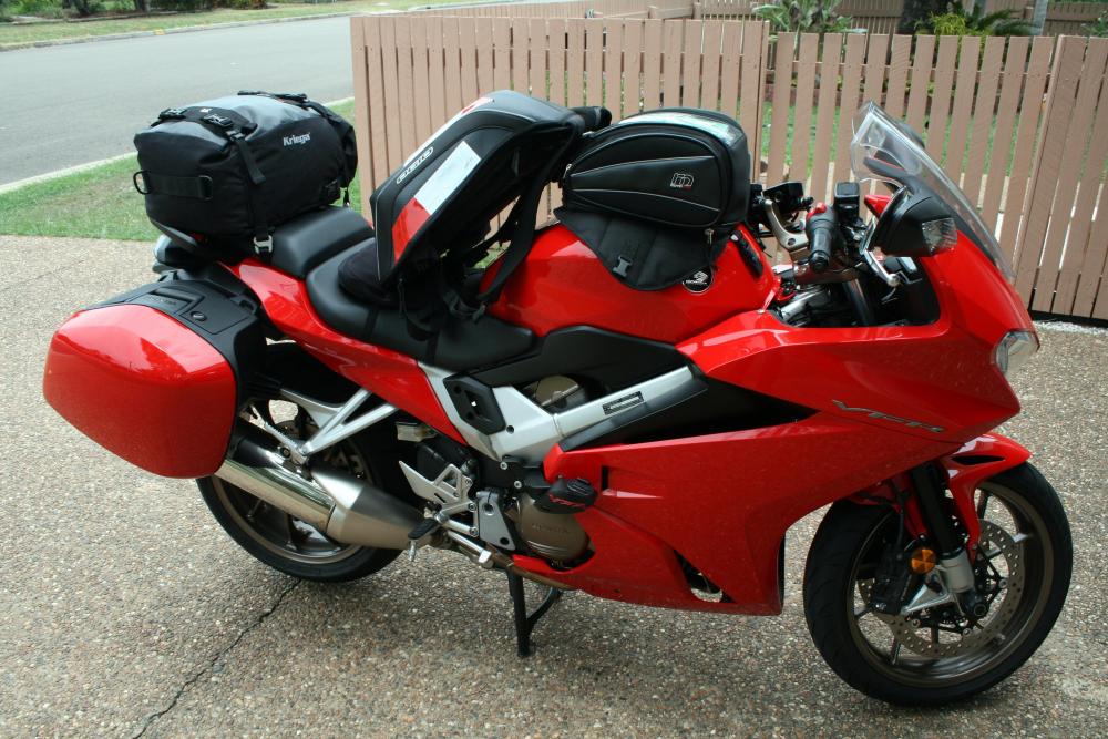 My lovely wife wants to join me on a 9 day road trip for the first time since before kids (the oldest is 18). I have a 2014 standard VFR800 and I need to outfit it with saddlebags, a trunk, and a back rest but I cannot locate any pics. I'd rather buy used but... Any help would be greatly appreciated.