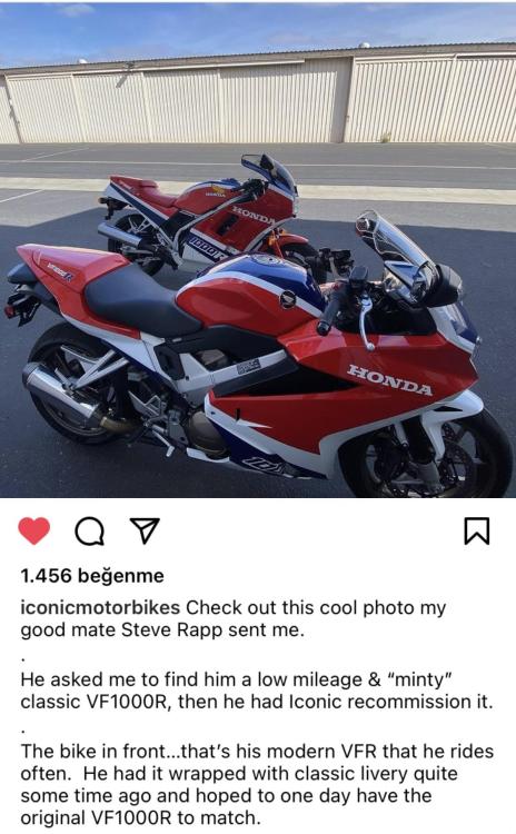 14. I could not see anyone posting this before. It’s an instagram post from Iconic Motorbikes, showing Steve Rapp’s newly acquired VF1000R next to his 8th generation VFR which is wrapped in VF1000R livery. I think it looks fantastic and wanted to share here. https://www.instagram.com/p/Cb4GLiXOInW/?utm_medium=copy_link