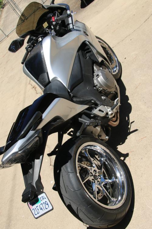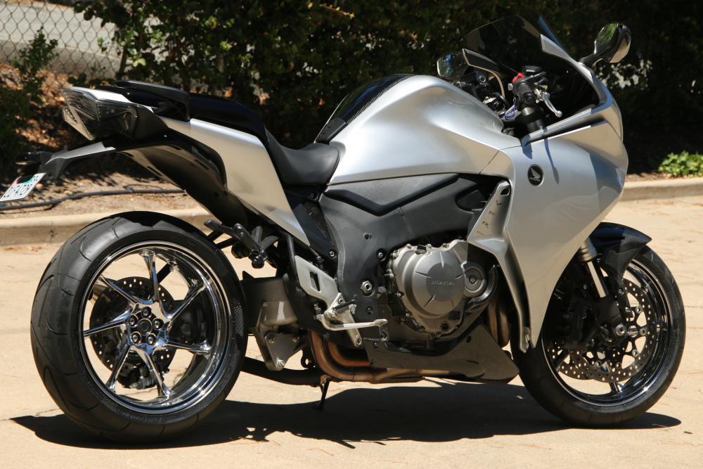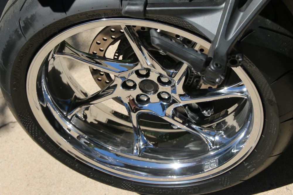Hi Guys, I bought a set of used rims for my VFR1200 on ebay and had them chromed. I like the look, and think they make the porky VFR look a lot lighter and a bit 'sportier'. Here's a link to some more pics: https://photos.google.com/album/AF1QipOA-Kns44H9K-5_rvWlNM-ofCDvUTB07zoBE9an Major chicken strips, just put the new Conti-Attacks on, and rode around the block before the photos. BLIGHT