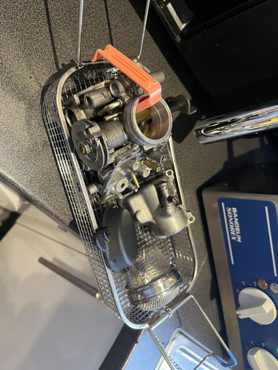 3. 4 and 3 removed and a shot of how the fuel and air pipes look. To start with I put the choke linkage assembly and fuel pipes into the ultrasonic cleaner. Pipes after cleaning. I have a Litetek kit to rebuild with