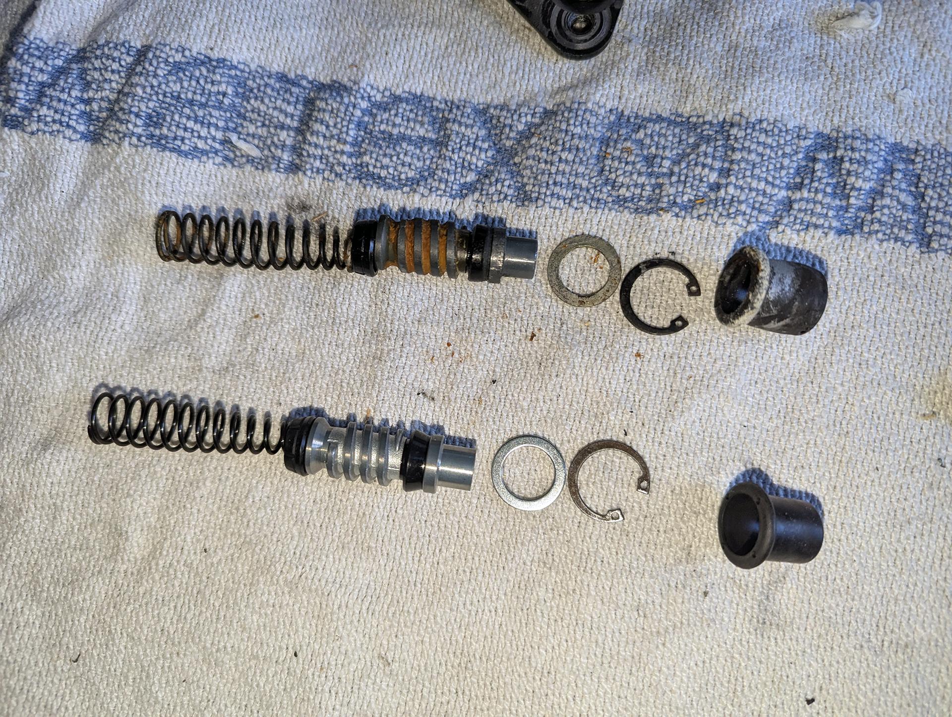 4. Hello everyone, In July this year, I purchased a neglected 1998 Honda VFR 800. I wasn't planning to buy any motorcycle because I already had an SV 650, but my friend's neighbor had this one for sale and told me that I should come and see it because the offer was interesting. It turned out he was right. The offer was interesting. The motorcycle has been owned by one owner for 18 years, who can no longer ride a motorcycle due to back pain. Unfortunately, because of this, the motorcycle has not been used for the last 10 years. I managed to negotiate a good price and bought this motorcycle. The overall condition of the motorcycle is very good (especially considering its age). But due to how long it has been standing there is a lot to do here. This is my VFR 😄 Original exhaust will be repleaced with something good, but for now i have more important things to take care of. fairings off Take a look on brake fluid color xD There is so many things i had to do ASAP so i just started with good cleaning 😄 What a mess A lot better Side stand sensor wire was damaged, luckly it was easy repair due to oxidation i had to cut off small portion of wire and replace with new one good as new, Bike had some clutch related problems, It was hard to operate. Clutch worked like digital machine 0 or 1 it was really hard to operate smoothly this bike. Colour of fluid is telling me there is rust in system and also leak because level is below LOWER mark. Quick check and yep, there is a lot of rust in fluid reservoir is not tragic Just take a look xD I bought whole repair kit Direct comparison Cleaned Hydraulic line torqued to spec Ok time to take care of this mess Piston looks bad Gasket is long time gone, no wonder it was leaking Sadly i wasnt able to buy new piston at that time (now i have new one) so I did what I could, I cleaned the piston with steel wool and wd40. There is still a lot of pitting but surprisingly its not leaking (i will repleace piston anyway) New parts from repair kit Time to fill and bleed the system Now its a lot better, lever works smoothly just like it should. But still clutch need some attention. Before even taking a look i bought new clutch set (turned out to be right decision) Engine flush wont hurt after such a long time without running Clutch soaking in oil Damn, looks really black 😞 But luckly there was no metal shavings and also magnet was clean. I didnt have at this time correct size washer but this one did the trick. Ok cover off Well, this clutch is garbage. Plates thickness is in spec but hardened up like a rock. Also there was a lot of heat telling by the look of this plates These plates were not included in the clutch kit, so I checked their curvature according to the service book. They were all within specifications so I cleaned them with a gray scotch brite. New springs were included in this kit. And worst part of this job, removing old gasket :( Filled with good quality new 10w40 oil. and took for a ride. Damn its a whole new bike now, clutch working perfectly. There is still a lot to do with this bike so stay tuned 😄
